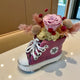 All star rose stabilizzate bianche: un'esclusiva creazione artigianale che unisce eleganza e originalità. Questo capolavoro presenta rose bianche stabilizzate, selezionate con cura per la loro purezza e bellezza, disposte in un vaso dalla forma inconfondibile di una scarpetta All Star. Ogni dettaglio è stato curato artigianalmente per creare un'opera unica che combina natura e design contemporaneo. Le rose mantengono il loro splendore intatto nel tempo, senza appassire, trasformando questo pezzo in una decorazione duratura e affascinante. Ideale per chi ama lo stile urbano e sofisticato, per sorprendere con un regalo memorabile o per aggiungere un tocco di personalità ai tuoi spazi. Una creazione che racconta una storia di bellezza senza tempo.